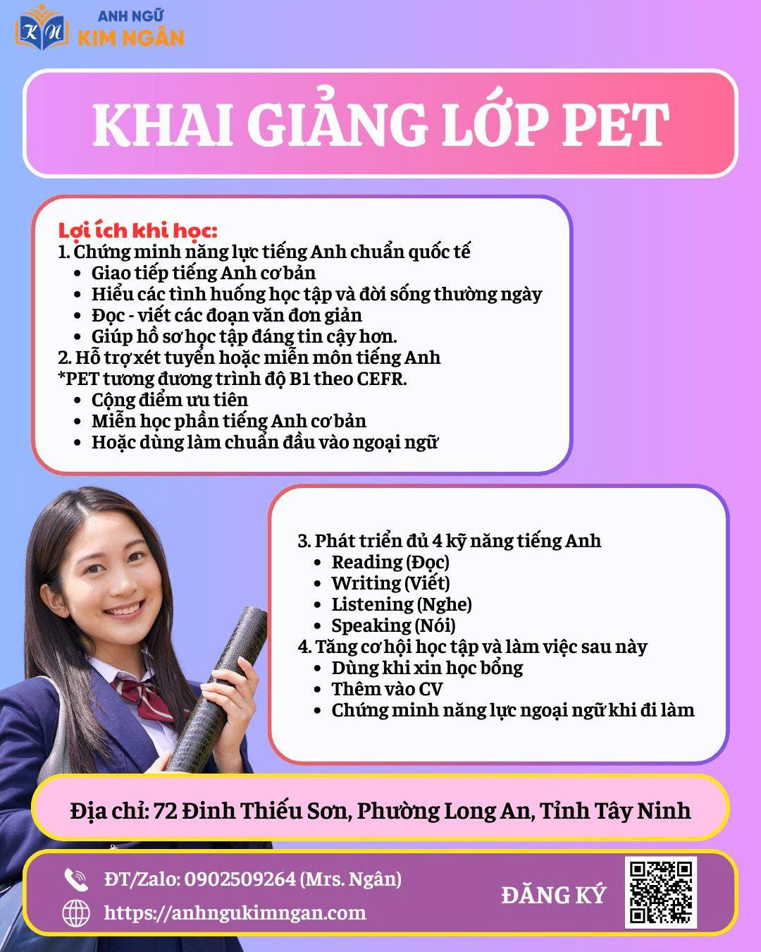 Anh Ngữ Kim Ngân Giúp học viên tự tin sử dụng tiếng Anh trong các tình huống hàng ngày và công việc.