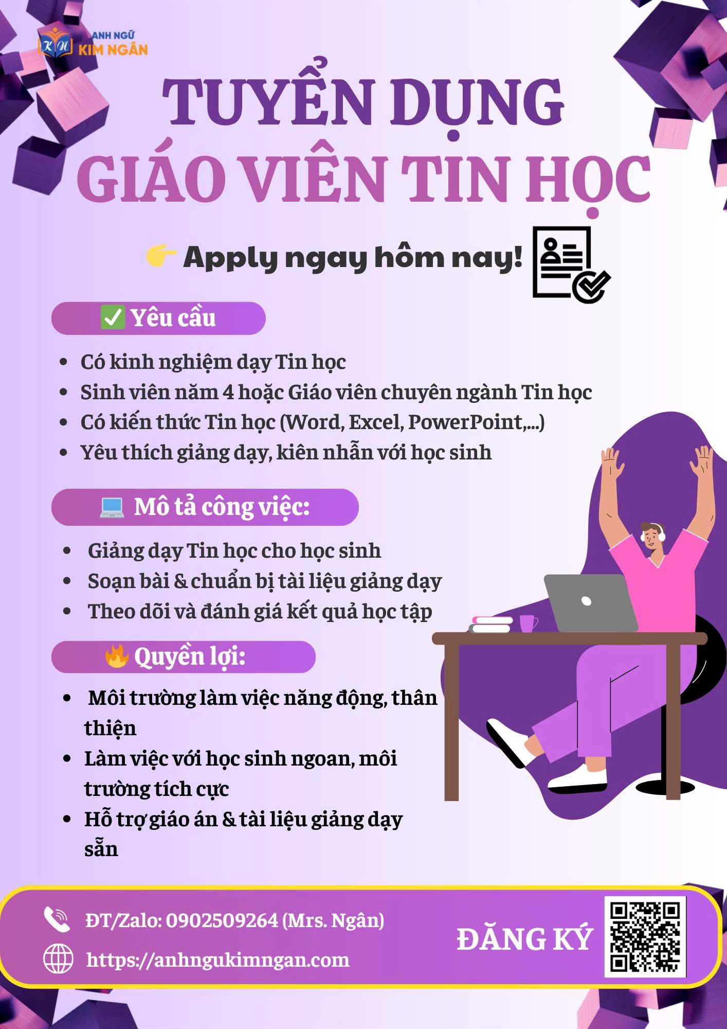 💼 𝐕ị 𝐭𝐫í: GIÁO VIÊN TIẾNG ANH(Cơ Sở 1) 🕒 𝐓𝐡ờ𝐢 𝐠𝐢𝐚𝐧 dạy học : ...